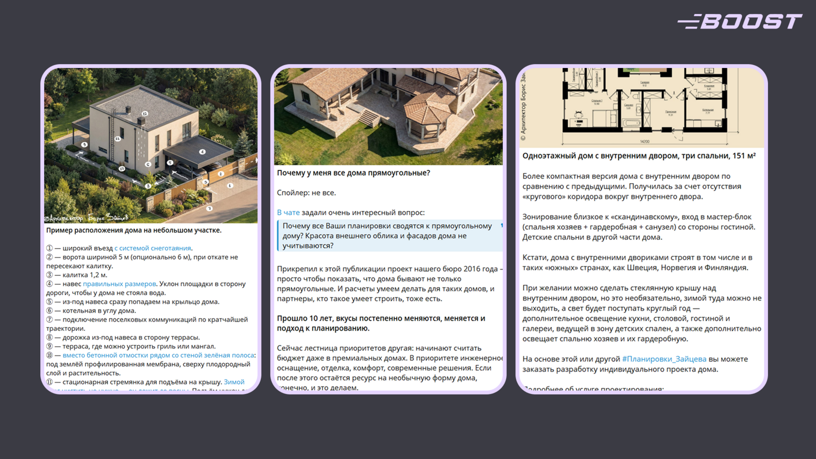 Таким образом, вам не приходится полагаться исключительно на сарафанное радио и профильные форумы, ведь вы целенаправленно формируете вокруг себя сообщество людей, которое доверяет вашему вкусу и профессиональному чутью. Такой подписчик, решив, например, построить загородный дом, разработать проект интерьера квартиры или создать концепцию общественного пространства, с высокой вероятностью обратится именно к вам, видя в вас доказанного профессионала.