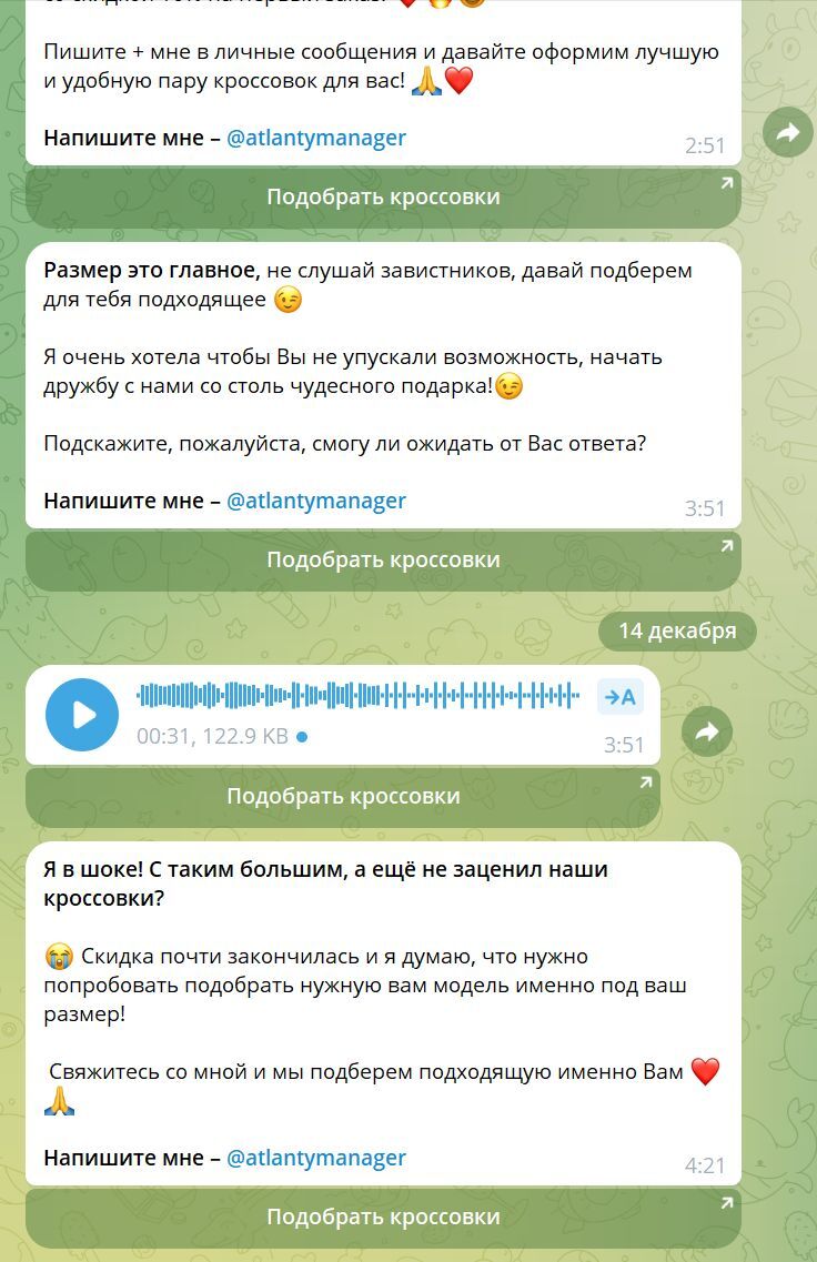 Лид-магнит дарит скидку на первый заказ, а также предоставляет потенциальному клиенту выгодные предложения. В чат-бот внедрены голосовые сообщения (цепочка автопрогрева), которые мотивируют клиента на покупку.