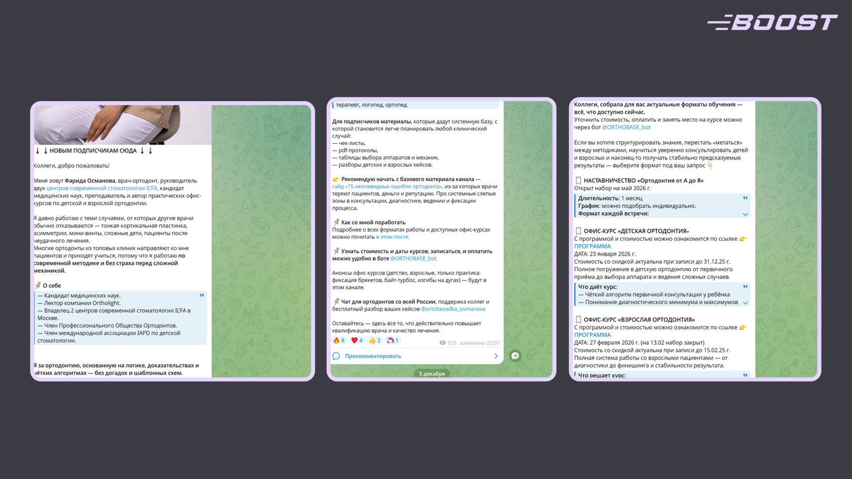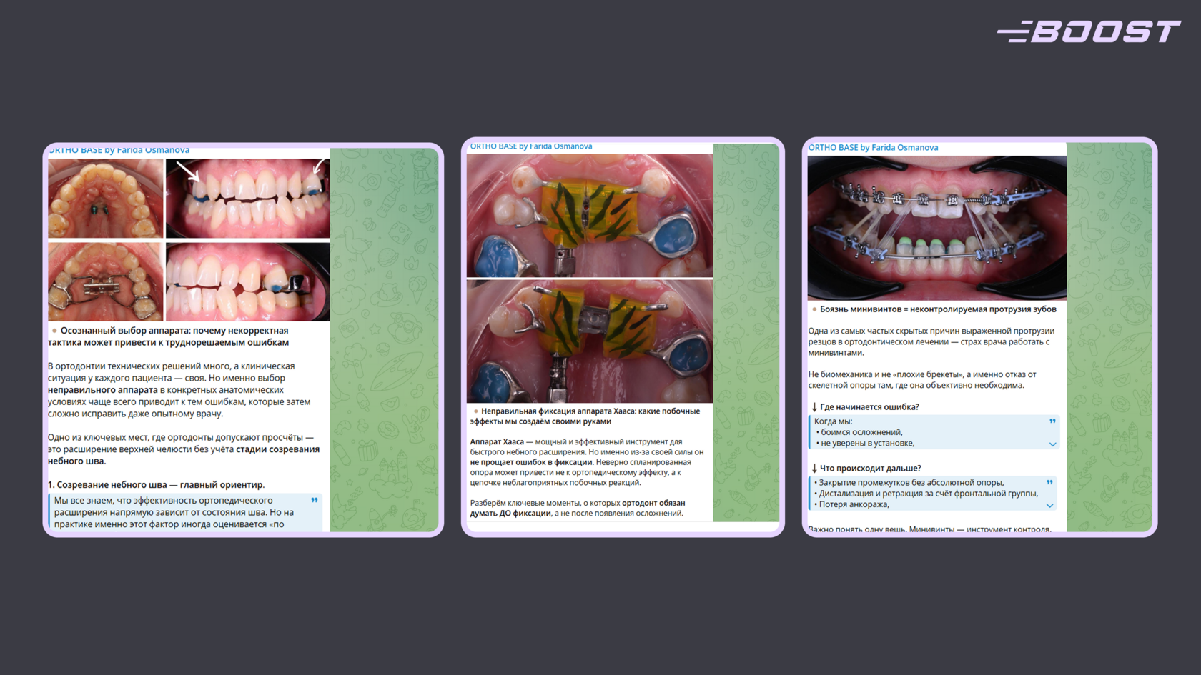 - Онлайн-курсы и программы: структурированные курсы для пациентов — «Осознанная имплантация: от диагностики до ухода за имплантами», «Путь к ровным зубам: полный гид по исправлению прикуса для взрослых».