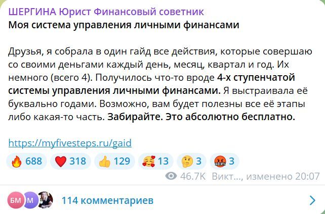 - Пост-ссылка, ведущая на гайд «Моя система управления личными финансами»,