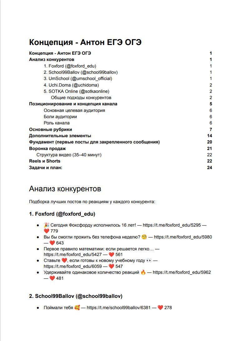 - Подготовлены первые 20 эталонных постов, раскрывающих преимущества школы в сравнении с другими ресурсами для подготовки к экзаменам.
