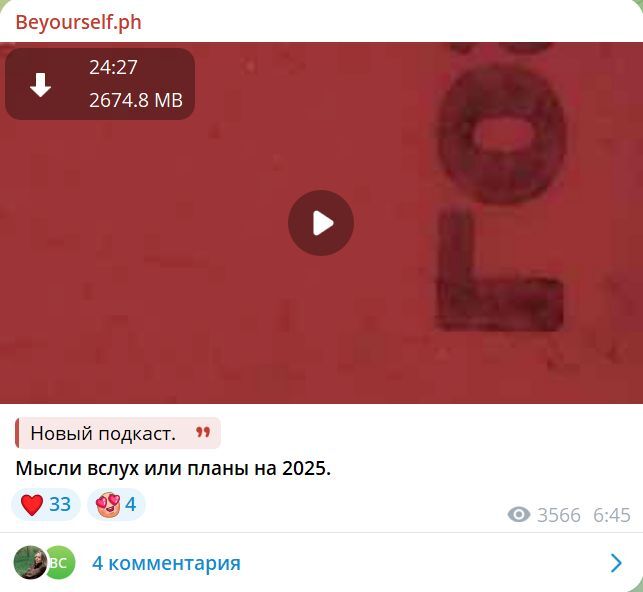 - Пост в формате подкаста. Рассказ о планах на 2025 год.