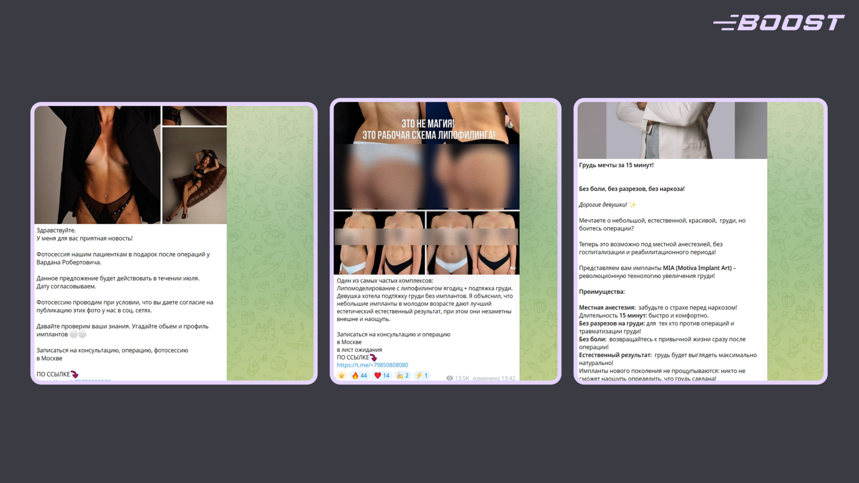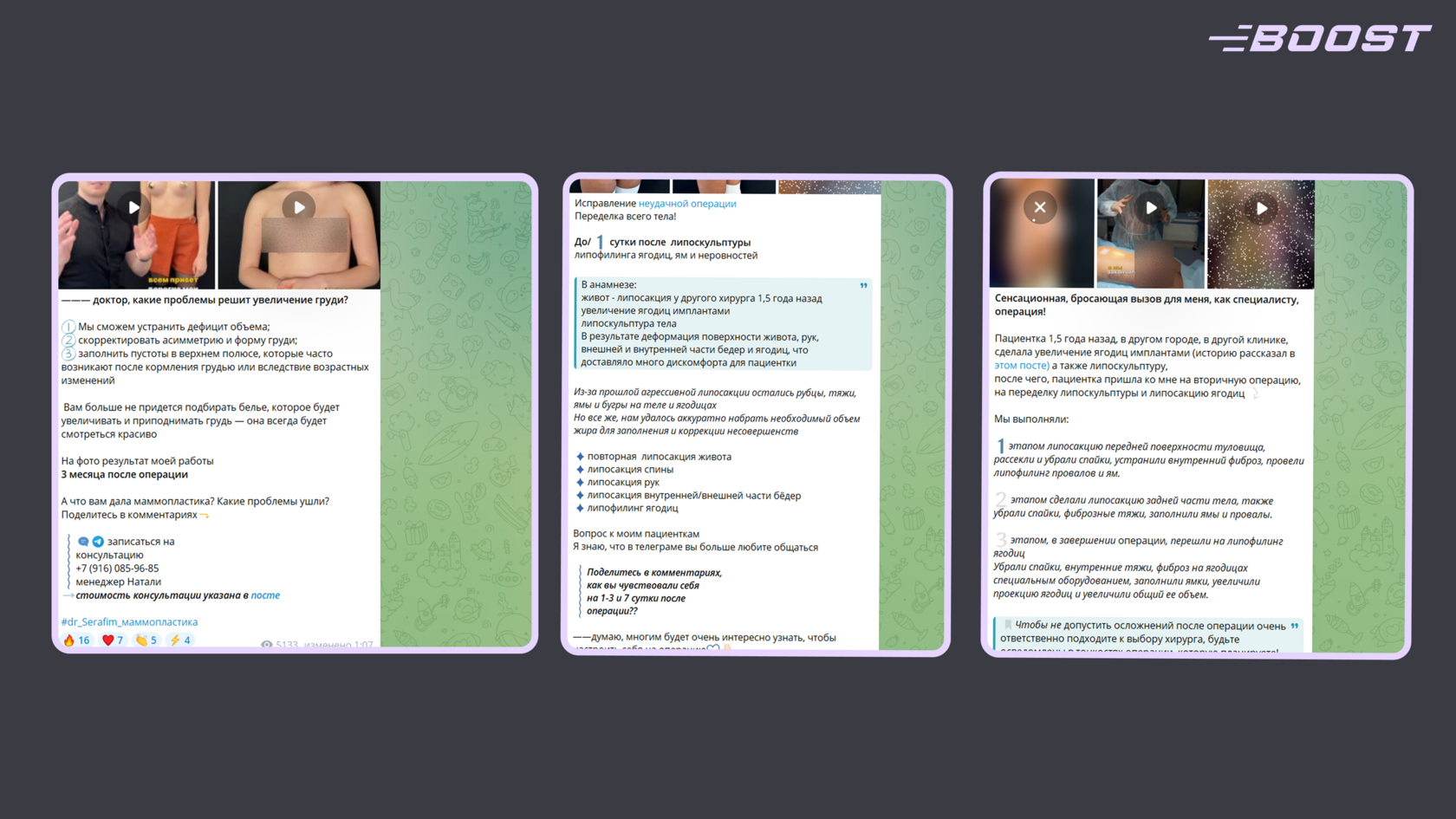 - Подборки советов и разборы мифов: например, «5 главных мифов о блефаропластике» или «Липофилинг — это навсегда? 4 факта о долговечности».