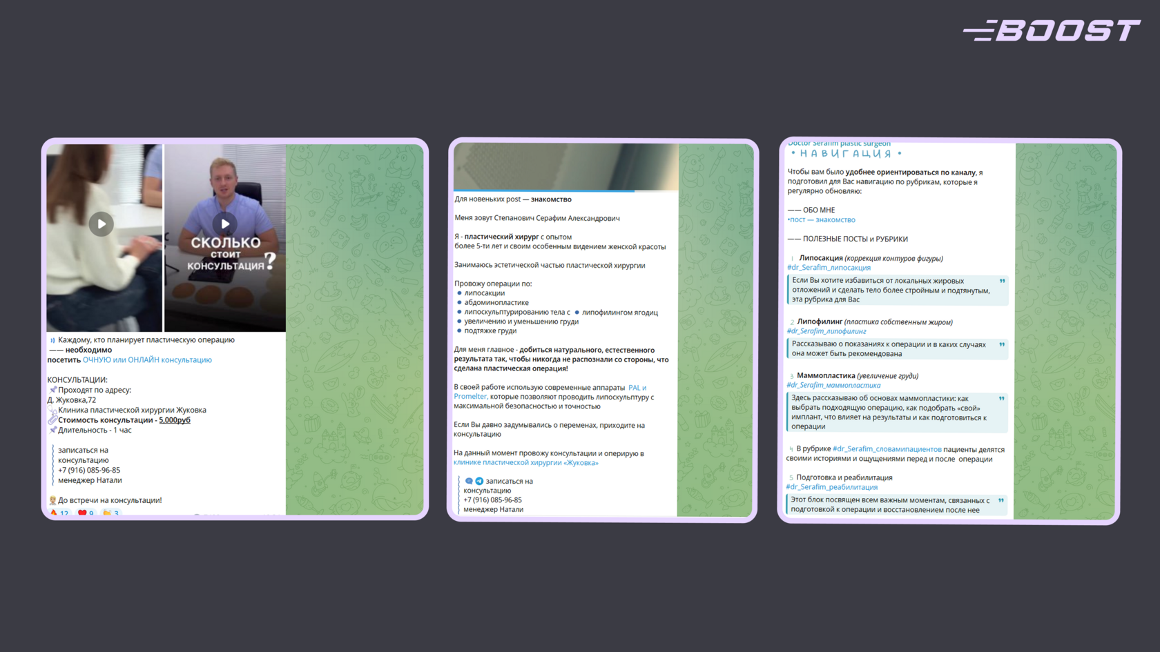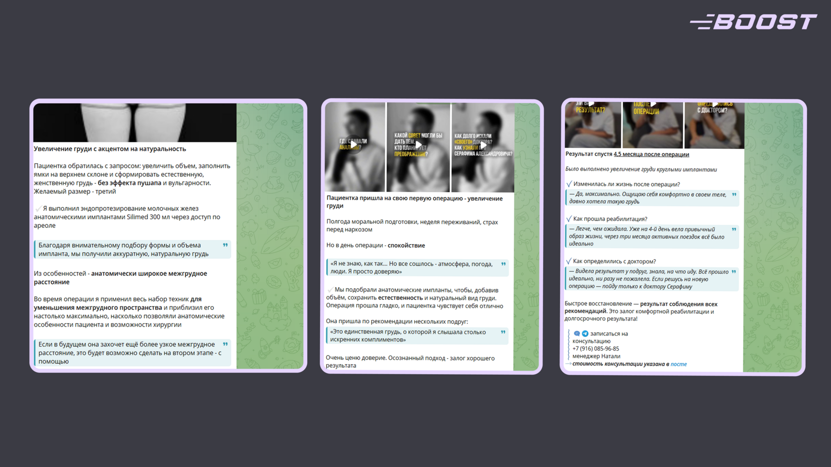 - Онлайн-курсы и программы: структурированные курсы для пациентов — «Осознанная ринопластика: от эстетического анализа до восстановления», «Путь к новой груди: полный гид по увеличению, подтяжке и выбору имплантов».