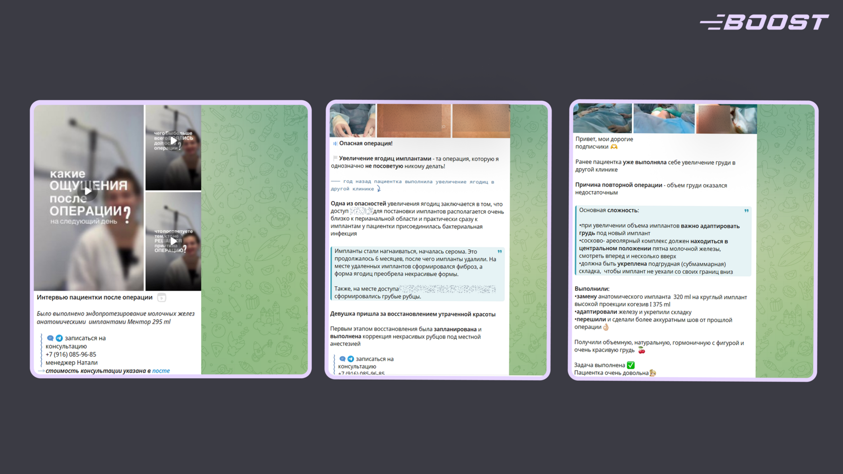 - Групповые программы поддержки и мастермайнды: объединение пациентов по интересам или ситуациям — «Клуб дооперационной подготовки: поддержка, вопросы, ответы», «Группа для пациентов в процессе реабилитации: обмен опытом и лайфхаками», «Мастермайнд по естественной эстетике: как ставить цели перед операцией».