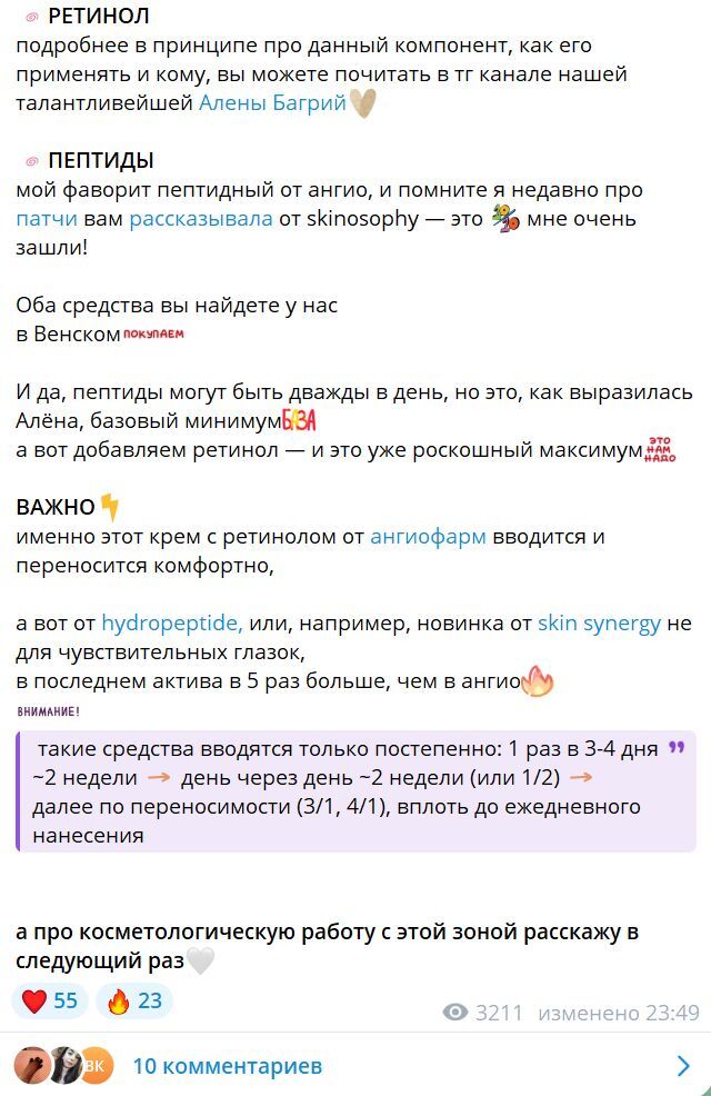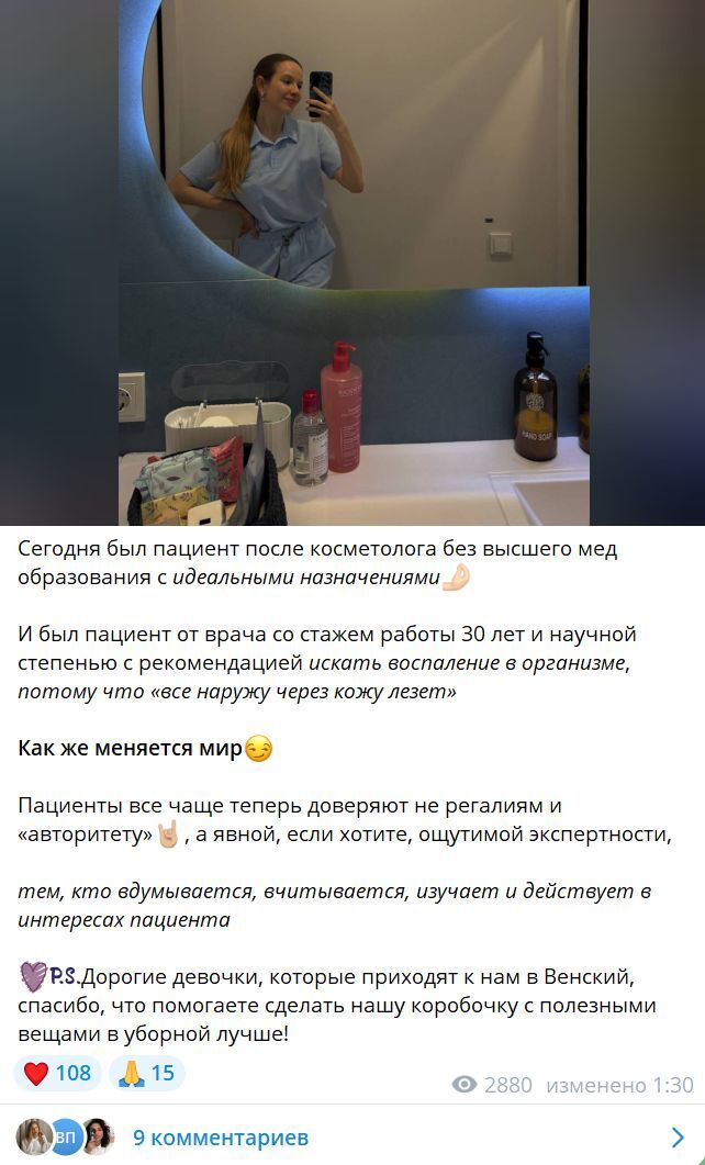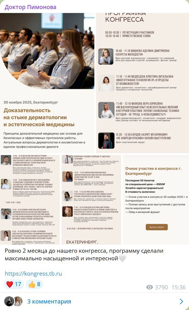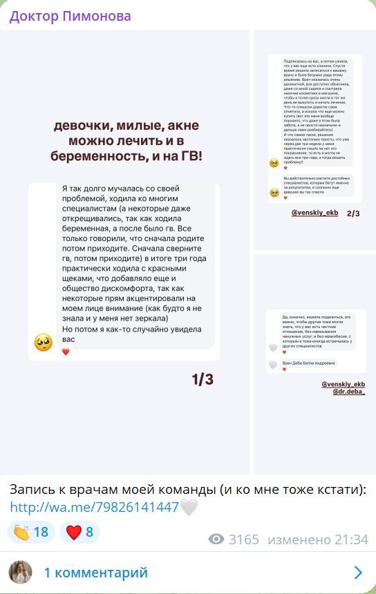 - Командный подход: упоминание врачей из команды усиливает доверие аудитории + повышает экспертность автора канала.