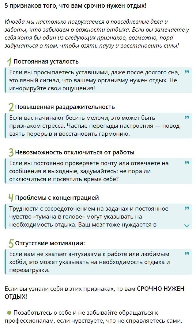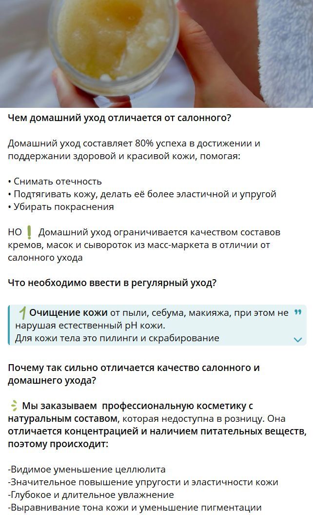 Мы выявили, что публиковать сухие описания процедур и прайс-листы — бесполезно. Такой контент не вызывает эмоций и не мотивирует к записи. К тому же, на ключевые вопросы клиентов об отличиях программ, составе средств и эффекте ответов нигде не было, и это срочно нужно было решать.